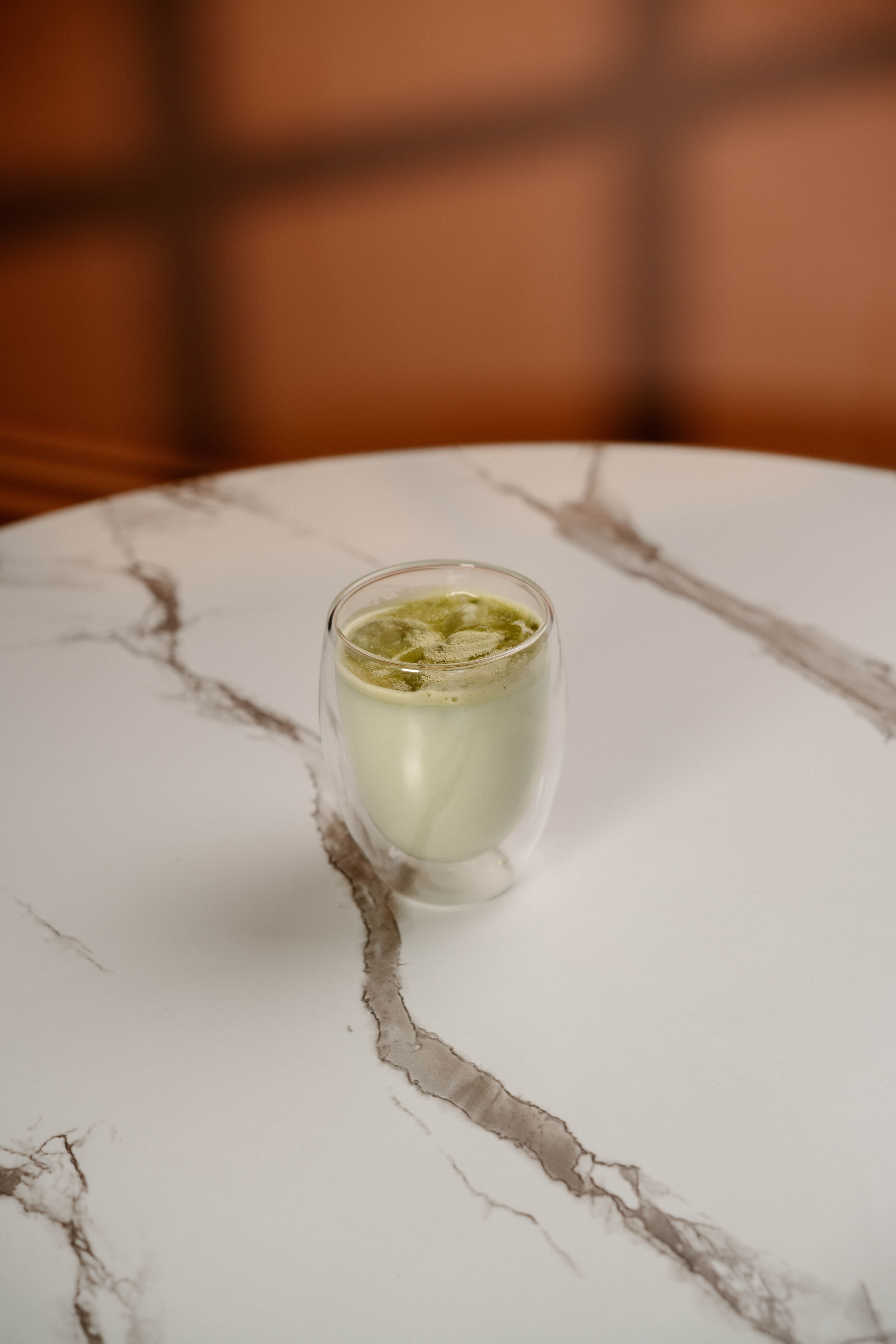 Doble shot de espresso con leche vaporizada y una fina capa de espuma.